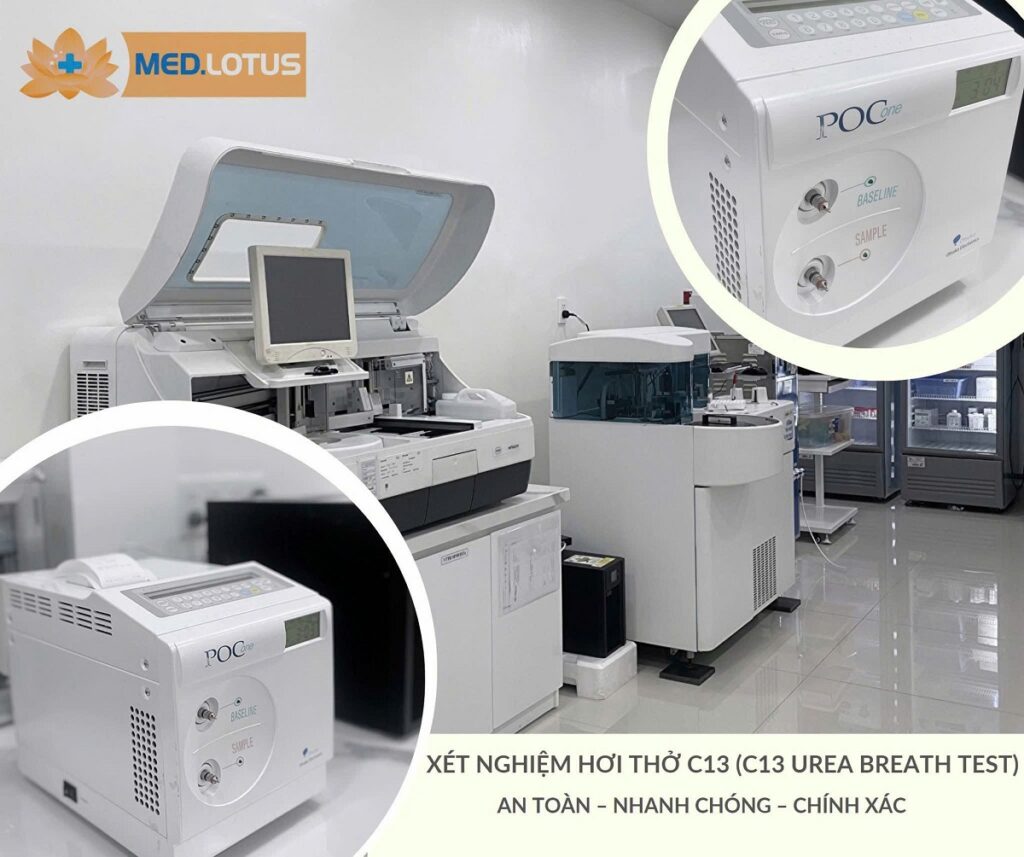 Máy xét nghiệm H.Pylori hơi thở C13 là thiết bị y tế dùng để xét nghiệm vi khuẩn gây viêm dạ dày Helicobacter pylori (H.pylori) bằng Carbon 13.